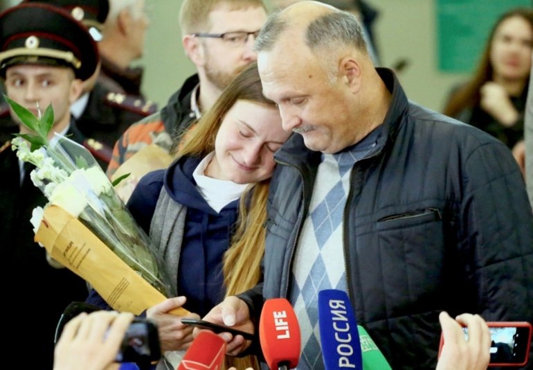 Незабываемые минуты. Мария с отцом Валерием Бутиным в международном аэропорту Шереметьево имени А. С. Пушкина в Москве.